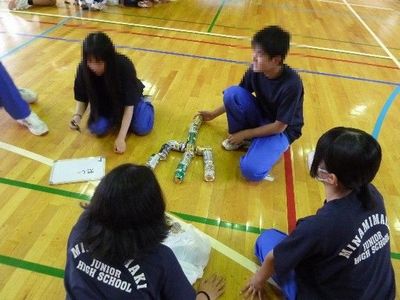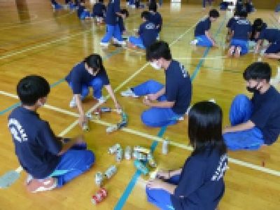 生徒会で回収したアルミ缶を使って、縦割りグループでレクを行いました。