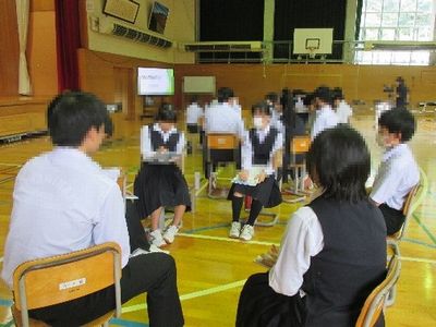 長野工業高等専門学校4年生が来校し,本校3年生に学校の様子をお話してくださいました。真剣に聞いたり,質問したりする姿がありました。