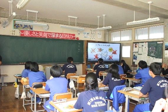 今回はロイロノートを使用し、リアルタイムで全校生徒からも意見が出されました。