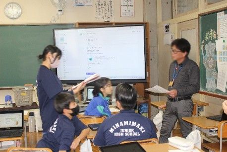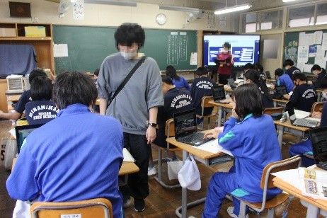今回はロイロノートを使用し、リアルタイムで全校生徒からも意見が出されました。