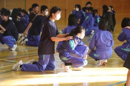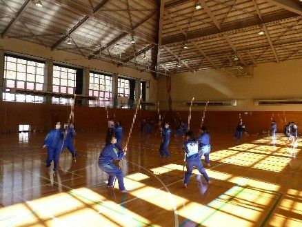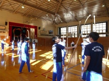 体育の授業では、武道単元の一環として講師をお招きし、なぎなたの学習を行いました。なぎなたの歴史や基本的な技について教えていただきました。生徒たちは、初めて手にするなぎなたに戸惑いながらも、少しずつコツをつかみ、技に挑戦する姿が見られました。