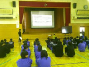 18日から給食週間が始まっています。この日は給食に関する生徒集会を行いました。