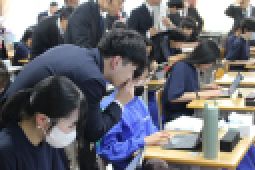 ルーラーキャッチを題材に,反応速度が速い人の傾向を考える授業でした。分析は何を使ってどのようにすればよいかを考え,データを根拠に反応が速い人の傾向を明らかにしていきました。県内各地より30名ほどの先生方が参観されました。