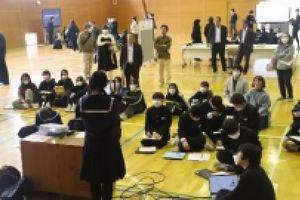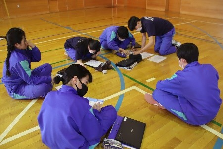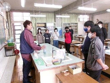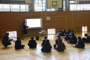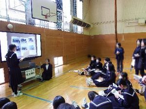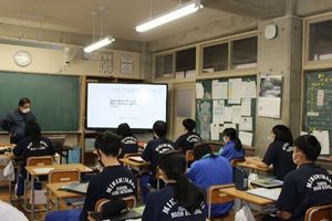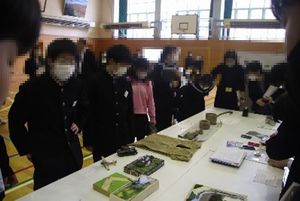村内の6年生を迎えて中学校説明会を行いました。実演を交えた説明では,1年生が丁寧に分かりやすく伝えようとする姿が印象的でした。