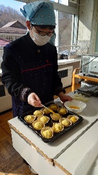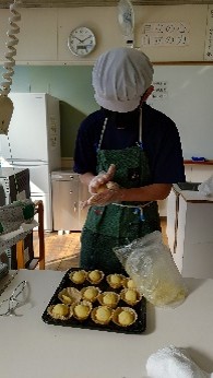 あけび学級では、販売活動を行っています。この日は、スイートポテトを作り、先生方に販売しました。