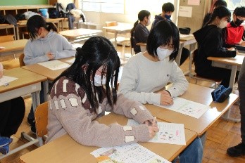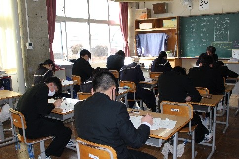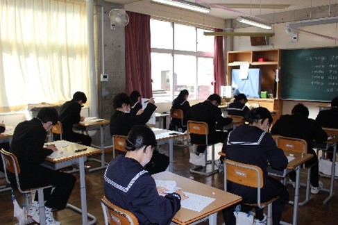 どの生徒も真剣に取り組み,ベストを尽くしていました。今回のテストを通して自身の得意分野や課題を把握し,進級に向けて,春季休業中の家庭学習に生かしてほしいと願っています。
