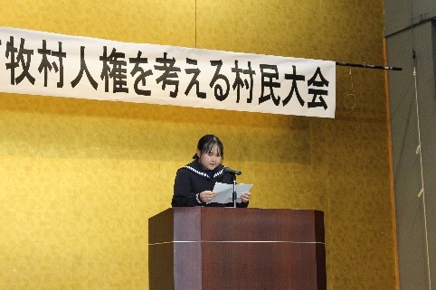 二年生の代表二名が作文発表をしました。人を思いやる気持ちや,学んだことを自分のこととして受け止めようとする姿勢が伝わり,聞いている人の心に響くものがありました。