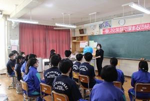 全国大会にむけて全校生徒、職員でエールを送りまし